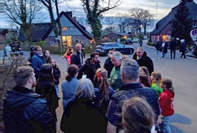 Zahlreiche Holmer schauen sich die Filmarbeiten