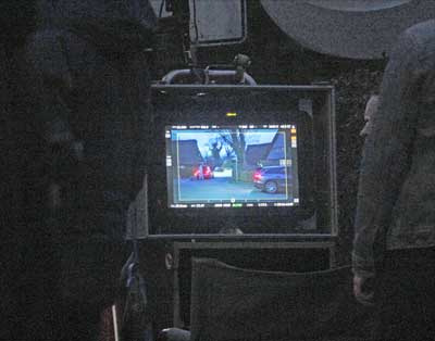 Auf einem Monitor ist die gedrehte Szene zu