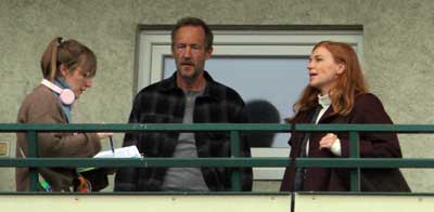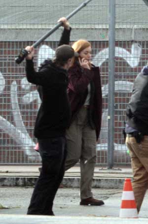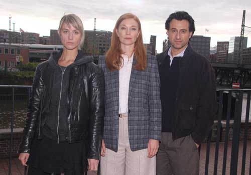 links) beim Fototermin am Set des NDR Thrillers „Frau ohne