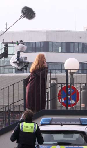 (mr/ha). Auf dem Balkon eines Hochhauses an der Louise-Schröder-Straße in Hamburg-Altona wird gedreht. Eine Kamerafrau, sowie mehrere Crew-Mitglieder aus Maske, Kostüm, Licht, Aufnahmeleitung und Ton stehen bereit, um eine Szene zu produzieren. Vor der TV-Kamera stehen an diesem Drehtag Marleen Lose und Stephan Kampwirt. Zuschauer haben es schwer, bei den Filmarbeiten zuzuschauen: denn die Dreharbeiten finden im zwölften Stock statt.