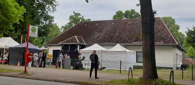 Vergangene Woche begannen die Filmarbeiten mit Horst Schlämmer und seiner Filmcrew am Falkenbergsweg in Neugraben. Wie gewohnt mit grauer Matte, Schnauzer und Brille. Auffällig: er hatte keinen Trenchcoat an. Ob es an dem Innendreh lag? Gedreht wurde in der ehemaligen Hamburger Kneipe „Am Quellgrund“. Die Filmcrew baute dazu für mehrere Komparsen extra ein weißes Zelt auf, in dem sie sich bis zu ihrem Einsatz aufhalten konnten. Ein weiteres Zelt diente für Teile der Technik. „Zwei weitere Zelte wurden extra aufgebaut, damit keine Zaungäste und neugierige `echte` Jpurnalisten und Pressefotografen vor dem Gebäude stehen bleiben und die Filmarbeiten beobachten“, sagt ein Crew-Mitglied hinter vorgehaltener Hand.