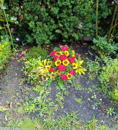 Der Grabstein von Schauspieler Horst Frank ist kaum zu erkennen. Der Stein ist mit Pflanzen zugewuchert, die Grabstätte wirkt verwahrlost.