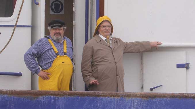 Dann gab es einen Locationwechsel: der Fischkutter schipperte zu einer anderen Kaimauer. Dort stieg Horst Schlämmer an Bord und unterhielt sich mit dem Mitarbeiter des Fischkutters. Gar nicht zu erkenenn: dabei handelte es sich um den Schauspieler Ulrich Bähnk. Vielen TV-Zuschauern ist er noch aus der ZDF-Serie „Der Landarzt“ bekannt. Dort spielete er von 2006 bis 2013 den Dorfpolizisten Dieter Paetz.