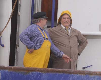 Nach der Mittagspause ging es wieder zurück ans Filmmotiv. Dort drehte die Filmcrew unter anderem die Abfahrt und die Ankunft des Fischkutters an der Kaimauer. Horst Schlämmer stand dabei direkt an der Kaimauer und sprach mit einem Mitarbeiter auf dem Fischkutter. Der Dialog war nicht zu verstehen – Passanten konnten nur aus der Entfernung die Filmarbeiten verfolgen.