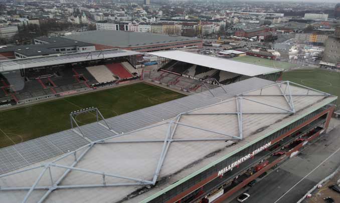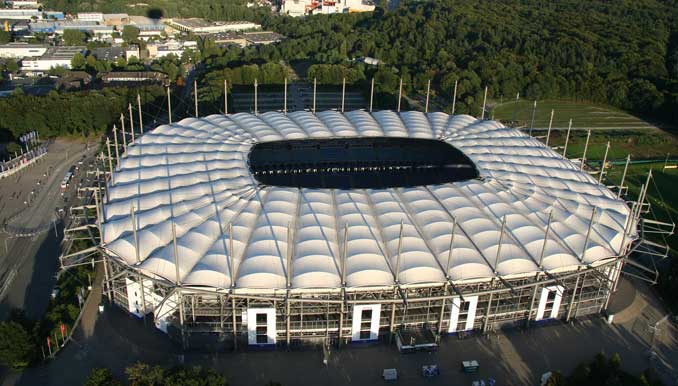 Das Volksparkstadion in Hamburg-Bahrenfeld. Das Zuhause des Bundesligisten HSV. Foto: ha/ Wikipedia /