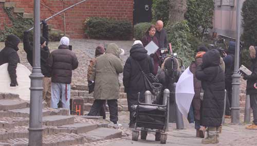 Für den letzten Außendreh vor der Winterpause nutze die Filmcrew unter anderem den Johann-Sebastian-Bach-Platz, die Straße Am Iflock und den Klostergang. Die zahlreichen Produktionsfahrzeuge stellte das Filmteam wie immer auf einer Privatfläche an der Michaeliskirche parken. Allerdings hatte die TV-Crew die Zeit im Nacken: den nachmittags fand eine Trauerfeier in der St.-Michaelis-Kirche statt – bis dahin mussten sämtliche Szenen im Kasten und die Fahrzeuge wieder verschwunden sein. Von daher wurden zügig die Bilder in Szene gesetzt. Damit das TV-Team möglichst ungestört arbeiten kann, wurden die Drehorte kurzfristig von Filmblockern abgesperrt, die Passanten darum baten, einen Bogen um das Filmset zu machen.