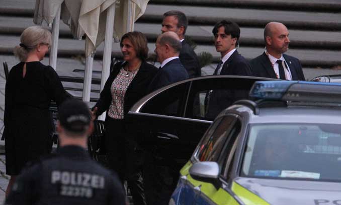 Bundeskanzler Olaf Scholz mit seiner Frau Britta Ernst bei der Ankunft am Maritimen Museum in Hamburg. Foto: FoTe Press