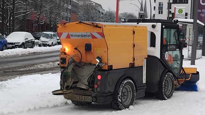 Gleichzeitig arbeiten alle Hamburger Behörden und städtischen Betriebe mit Hochdruck daran, die Auswirkungen der schwierigen Witterung so gering wie möglich zu halten. Der Winterdienst der Stadtreinigung Hamburg (SRH) befindet sich hierfür seit Tagen im Volleinsatz: Mit rund 730 Einsatzkräften und 360 Fahrzeugen konzentrieren sich die Räum- und Streuarbeiten prioritär auf wichtige Hauptverkehrsadern, Verbindungsstraßen, Busstrecken sowie ein ausgewähltes Radwegenetz und Fußgängerüberwege. Um die Verkehrssicherheit zu erhöhen, kommt auf Geh- und Radwegen seit gestern ergänzend Salz zum Einsatz; die bisherige Wirkung wird als positiv bewertet.