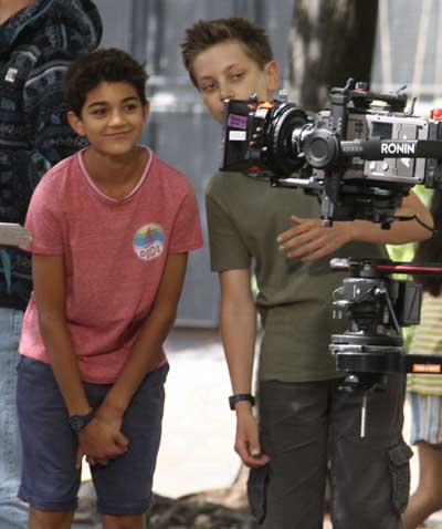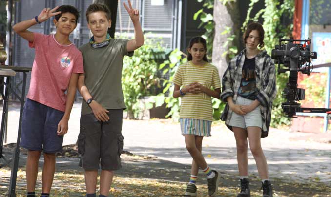 Die neuen Pfefferkörner am Filmset auf dem Großneumarkt: Mads, Jan, Sophia und Charlotte. Es fehlt Melody. Foto: FoTe Press