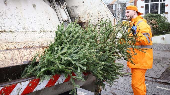 Ein Mitarbeiter der Stadtreinigung Hamburg bei der Tannenbaumabfuhr. Foto: ha/Stadtreinigung Hamburg